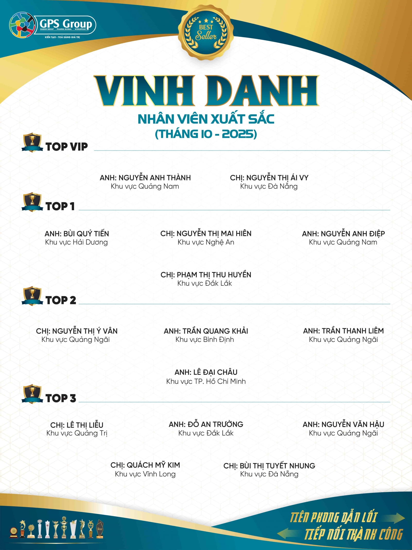 Với sự trân trọng và ghi nhận xứng đáng, Bảng Vàng Tháng 10 vinh dự gọi tên những chiến binh xuất sắc – những cá nhân đã tạo dấu ấn nổi bật của Pharma Global.