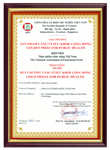 Sản phẩm Não Tâm Vương của DAISON GROUP được nhận Giải thưởng "Sản Phẩm Vàng Vì Sức Khỏe Cộng Đồng"