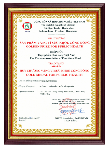 Sản phẩm TOKO JapanGold của DAISON GROUP được nhận Giải thưởng "Sản Phẩm Vàng Vì Sức Khỏe Cộng Đồng"