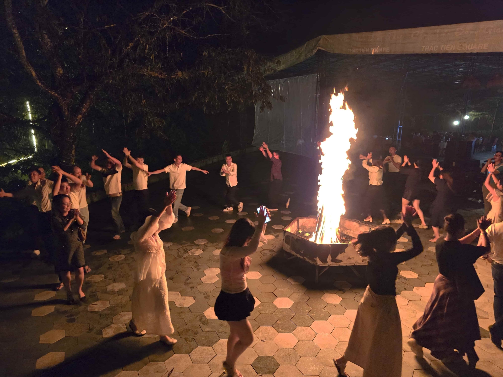 Đặc biệt, tiết mục đốt lửa trại đã thắp lên tinh thần đoàn kết khi mọi người nắm tay nhau hát vang giữa đêm núi rừng Đông Giang, tạo nên những kỷ niệm khó quên.