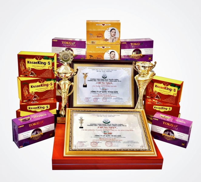 Ngày 26/10/2019 tại TP.HCM, đã diễn ra Chương trình "Truyền thông quảng bá thương hiệu - sản phẩm chất lượng quốc tế 4.0". Tại buổi lễ, Đại Sơn Group được vinh dự đón nhận 2 giải thưởng "TOP 10 - SẢN PHẨM CHẤT LƯỢNG VÌ SỨC KHOẺ CỘNG ĐỒNG" và "TOP 10 - DOANH NGHIỆP UY TÍN - THƯƠNG HIỆU HỘI NHẬP 4.0" với lĩnh vực hoạt động chính: Kinh doanh các sản phẩm chăm sóc sức khỏe cộng đồng