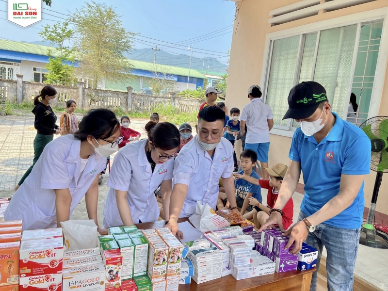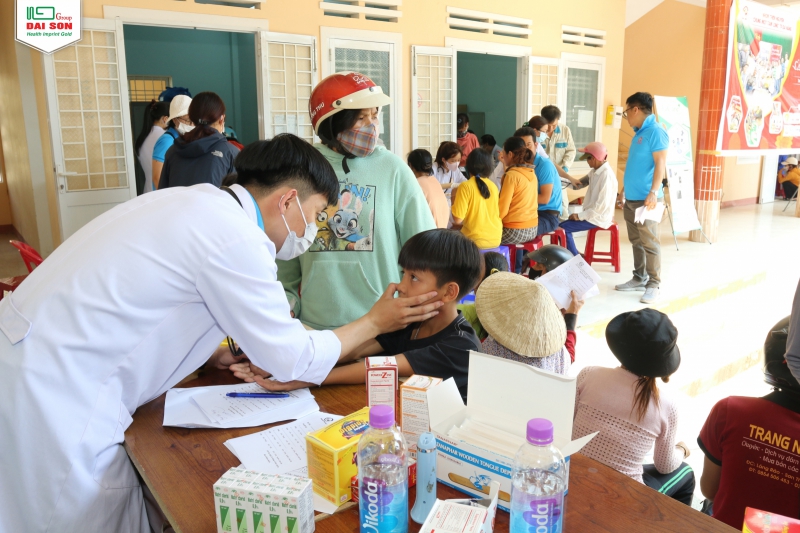 Ngay sau khi đến điểm tập trung, các Y Bác sĩ, Dược sĩ trong đoàn đã khẩn trương tiến hành thăm khám, cấp phát thuốc cho hơn 200 bà con và 150 em nhỏ. Rất đông người dân đã đến sớm, thăm khám các chuyên khoa, nghe các thầy thuốc tư vấn cẩn thận đầy đủ. Nhiều bệnh lý của bà con đã được các bác sĩ phát hiện. Trong chương trình, Đại Sơn Group phối hợp với nhóm Chung một Tấm lòng đã tặng 200 suất quà là các đồ dùng nhu yếu phẩm cho các trường hợp là người già, hộ gia đình có hoàn cảnh khó khăn, đồng thời đoàn cũng tặng 100 phần quà bánh kẹo cho các em nhỏ. Đặc biệt, sau khi kết thúc hoạt động thăm khám, đoàn đã trao tặng toàn bộ thuốc khám chữa bệnh cho trạm y tế xã Sơn Kỳ. Hy vọng rằng những phần quà đong đầy yêu thương và tình cảm của đoàn đã phần nào chia sẻ với khó khăn, động viên bà con xã Sơn Kỳ tiếp tục vươn lên trong cuộc sống.