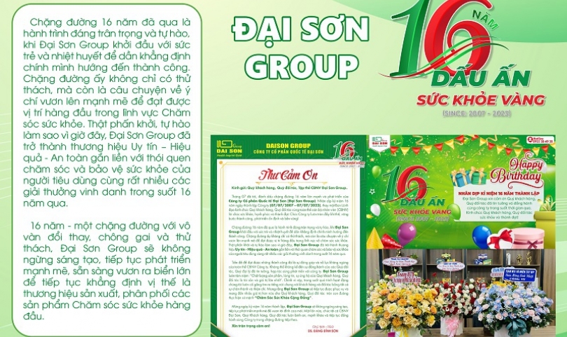 ĐẠI SƠN GROUP - TOP 10 SẢN PHẨM CHẤT LƯỢNG VÌ SỨC KHOẺ CỘNG ĐỒNG, TOP 10 DOANH NGHIỆP UY TÍN - THƯƠNG HIỆU HỘI NHẬP 4.0