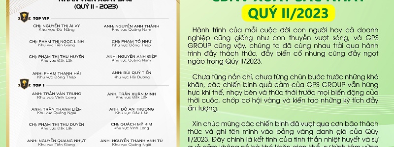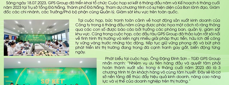 GPS GROUP HỌP SƠ KẾT HOẠT ĐỘNG 6 THÁNG ĐẦU NĂM, ĐỊNH HƯỚNG CHIẾN LƯỢC PHÁT TRIỂN 6 THÁNG CUỐI NĂM 2023