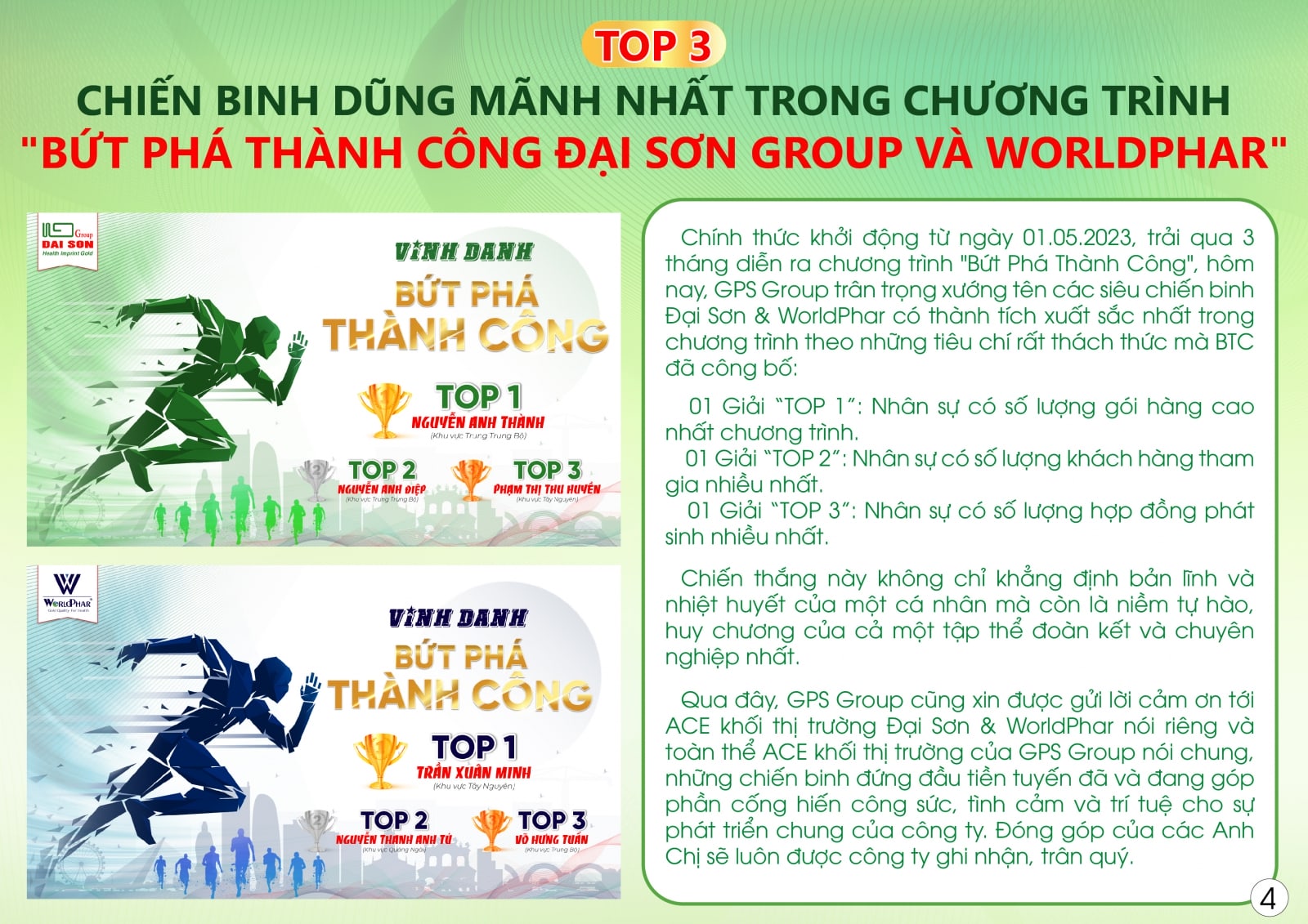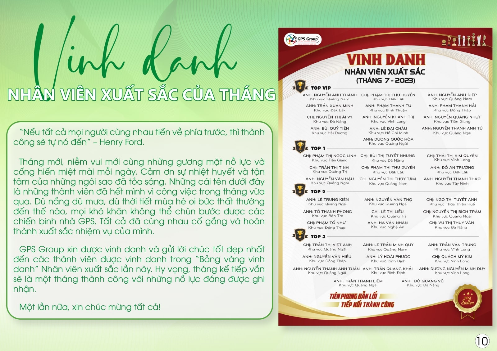 - VINH DANH NHÂN SỰ XUẤT SẮC NHẤT CHƯƠNG TRÌNH BỨT PHÁ THÀNH CÔNG “TIÊN PHONG DẪN ĐẦU – CHINH PHỤC ĐỈNH CAO”