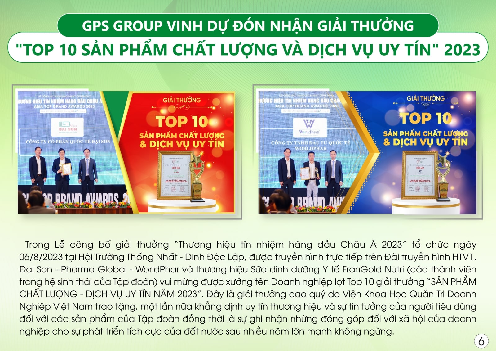 ĐẠI SƠN GROUP TỰ HÀO ĐÓN NHẬN GIẢI THƯỞNG “TOP 10 - SẢN PHẨM CHẤT LƯỢNG & DỊCH VỤ UY TÍN NĂM 2023”