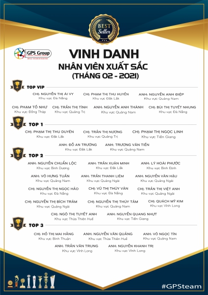 GPS Group xin gửi lời chúc mừng đến những thành viên đã có thành tích xuất sắc trong tháng 2 vừa qua.